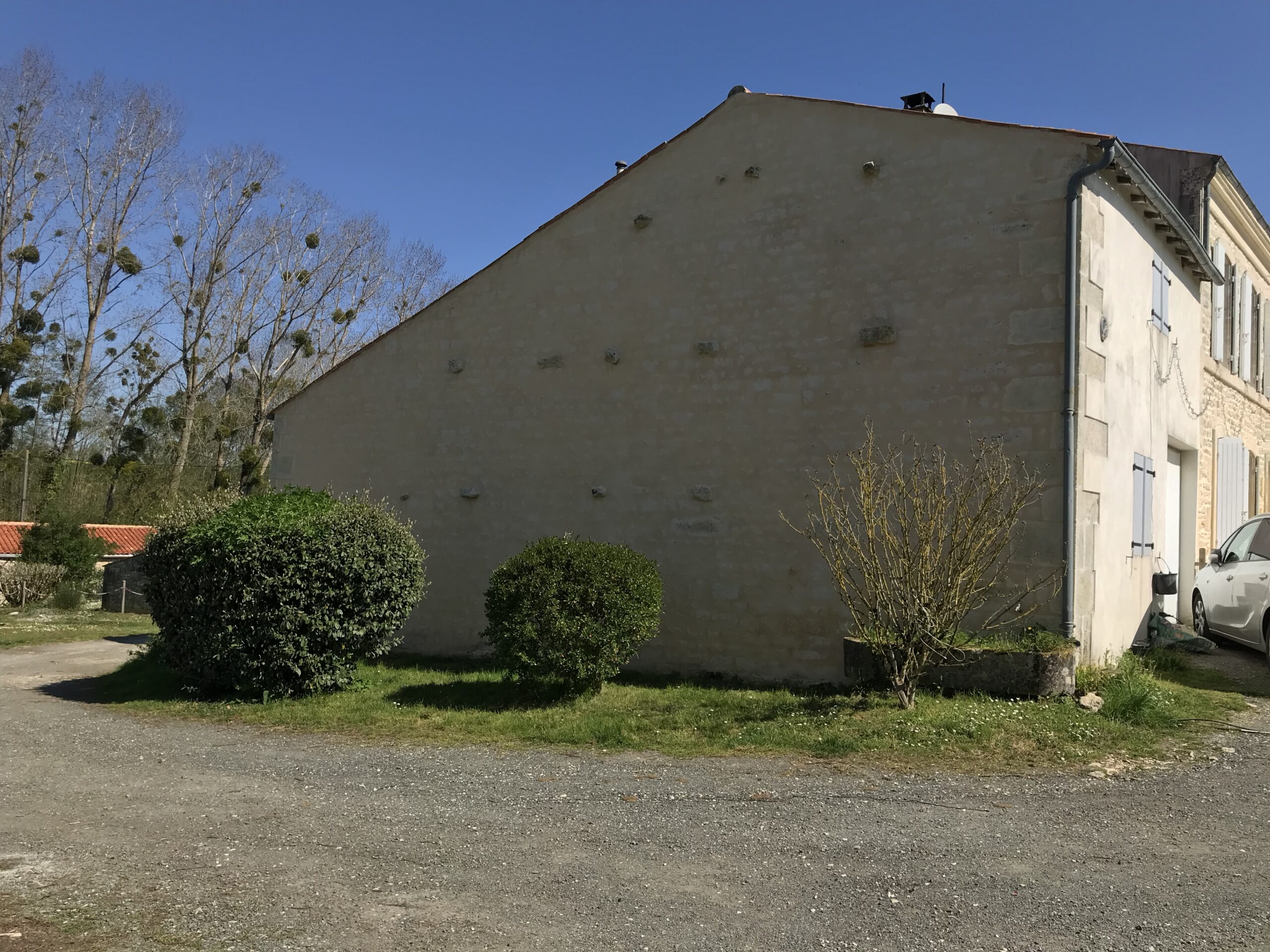 Une fois le support parfaitement préparé, un enduit à la chaux a été appliqué. Ce matériau traditionnel, respirant et durable, assure la protection du mur tout en respectant les méthodes ancestrales de la maçonnerie. L’enduit à la chaux contribue également à l’esthétique du pignon en mettant en valeur les pierres apparentes.